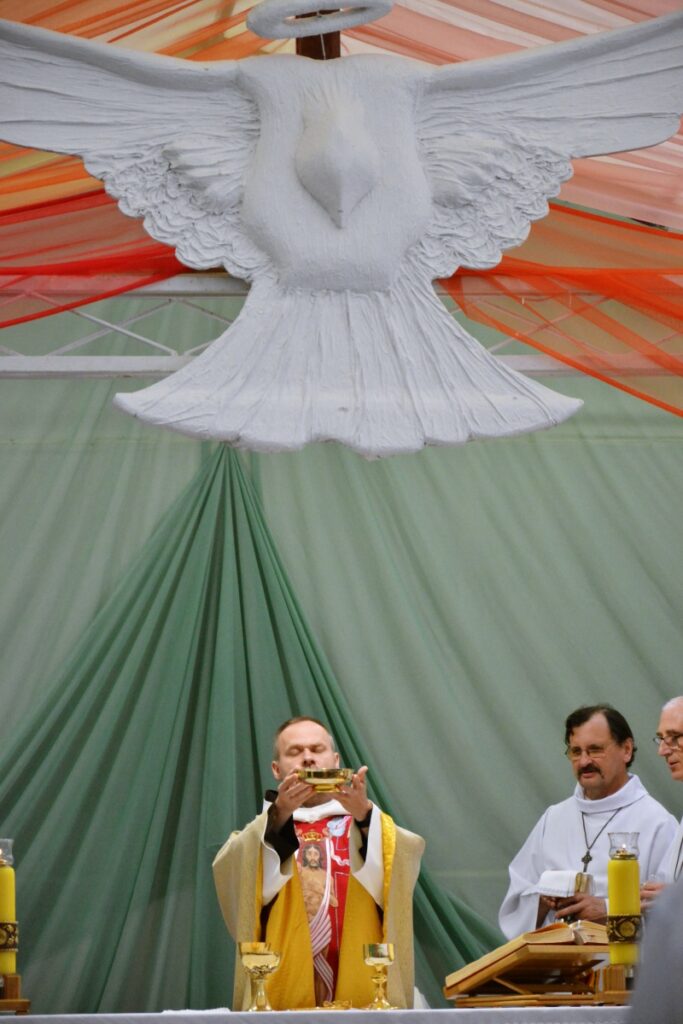 Następnie wspólnota wzięła udział w Eucharystii której przewodniczył o. Piotr Hensel, Radny Prowincji Krakowskiej Karmelitów Bosych. W homilii zwrócił on uwagę na podobieństwo postaci św. Jana Chrzciciela oraz Sługi Bożej Kunegundy Siwiec. Oboje pełnili w swoich wspólnotach rolę proroków, oboje głosili Boże Miłosierdzie, byli wsparciem i pomocą dla tych, którzy potrzebowali nawrócenia. Do prorockiej postawy, żywego świadectwa wiary zachęcał o. Piotr zebranych karmelitów, tak świeckich jak i habitowych, by na ich widok ludzie z którymi się oni zetkną mogli zapytać, jak pytali się współcześni Jana Chrzciciela: Kimże oni są?